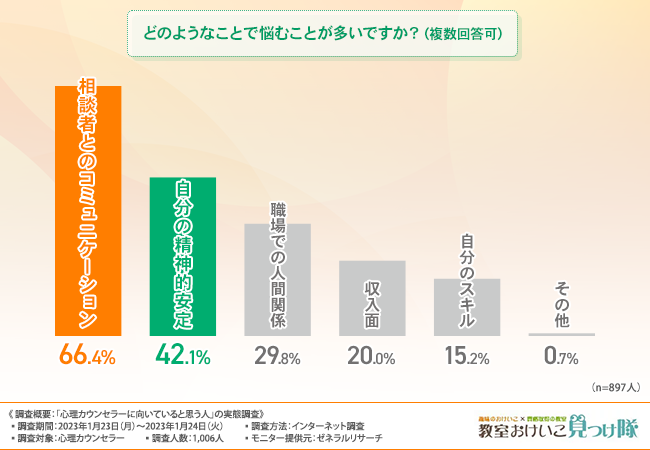 ・心理カウンセラーが悩んでしまったことがあるのは「相談者とのコミュニケーション」が最多に
