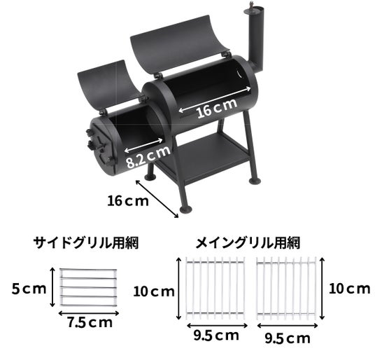 連結グリルでワンランク上の燻製を。2つのグリルが連結された構造になっており、下方のグリルで燃やした煙が、上方のグリルに流れる構造になっており、香り高い燻製をお楽しみいただけます。