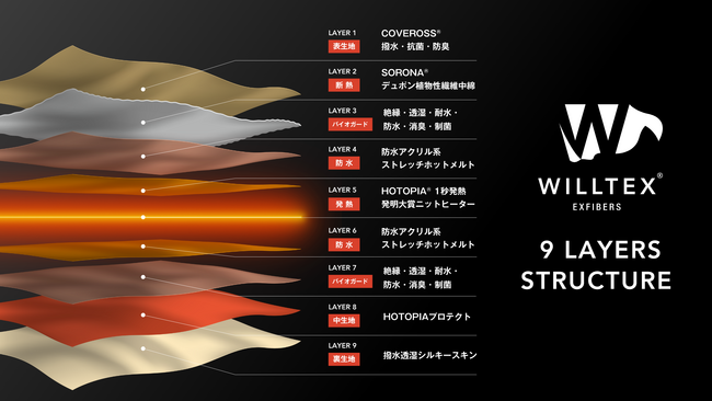 そしてこの度、同技術を搭載した1秒発熱防寒ウェアWILLTEX(R)をタイムラインのクラウドファンディングにてローンチすることができました。