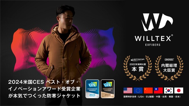 発明大賞本賞・内閣総理大臣賞・CES(R) 2024 Best of Innovation Honoreeを受賞 日本と米国が認めた技術で起こす防寒革命。1秒発熱「WILLTEX(R)」。