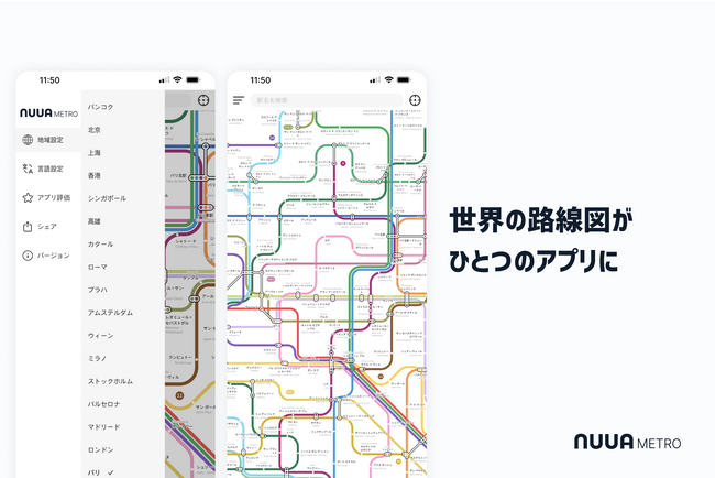 アプリひとつで海外・国内の路線図&乗換検索ができるオフライン乗換案内アプリ「NUUA METRO」に対応エリアが追加