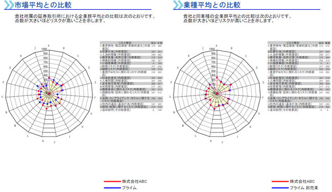 また、2者間(2評価間)の比較結果として、「リスク比較レポート」を出力できます。