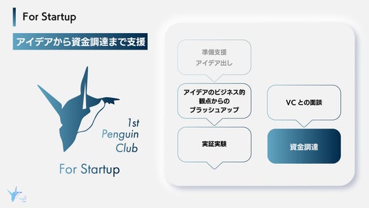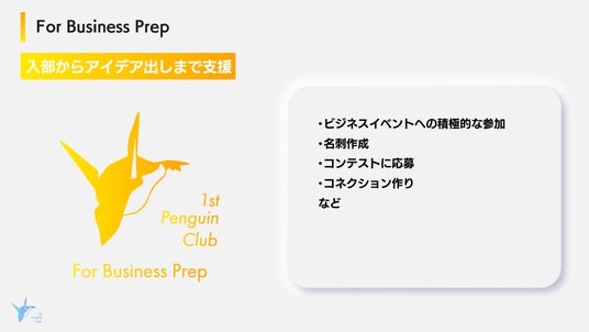 For Business Prep部員がビジネスアイデアを出す段階から支援し、ビジネス的観点からのブラッシュアップ、実証実験などを行います。