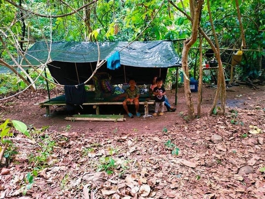 森の中で避難生活を送る人々