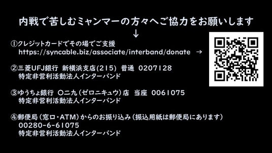 私たちインターバンドは、そのような人々に救いの手を差し伸べると同時に、支援を通じて知りえた現地の状況も広く伝えて、世界の関心をミャンマーに集め、平和的解決の道筋をつくっていきたいと思います。