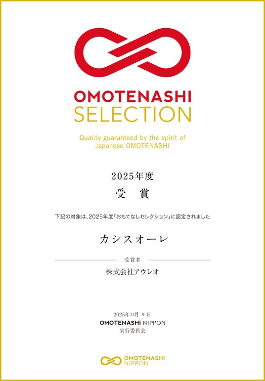 健康食品『カシスオーレ』が、2025年12月9日(火)に「おもてなしセレクション 2025」(主催:OMOTENASHI NIPPON 実行委員会)を受賞いたしました。