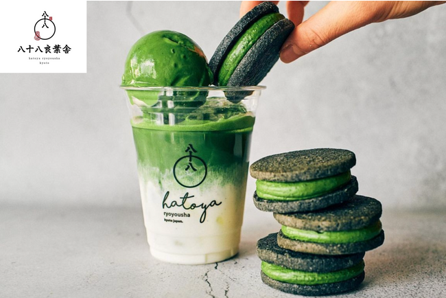 京都発の日本茶スタンド「八十八良葉舎」が関西初となる新商品「焙煎抹茶ラテソフト」「抹茶クッキー」に加え、昨年から大人気の抹茶バターサンドも販売いたします。