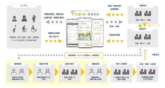 児童・障がい・介護福祉の領域プラットフォームを提供する「care-base(ケアベース)」は、全国の福祉事業所がICTを活用し、業務の効率化や地域連携、事業所を探しているユーザーに対して、自分に合った事業所探しが行えるプラットフォームです。