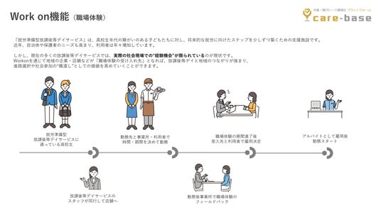 このような声を受けて、care-baseは「高校生のうちから、段階的に社会と関わる仕組みが必要」と判断し、Workon機能に「職場体験」という新たな導線を加えました。