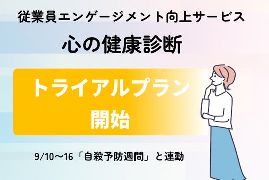 株式会社スターフェスタ(本社:大阪府大阪市北区、代表:浅井 健一郎、以下:当社)は、厚生労働省が設定する「自殺予防週間」に合わせ、組織内のうつ病や不安による離職を未然防止するエンゲージメント向上サービス「こころの健康診断」を、手軽にお試し頂けるトライアルプランを設定したことをお知らせいたします。