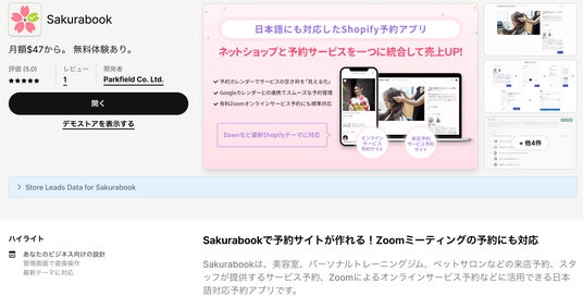 パークフィールド株式会社は、Shopifyプラットフォーム上で唯一の完全な日本語対応を実現した予約アプリ「Sakurabook」のリニューアル版をリリースしました。