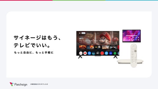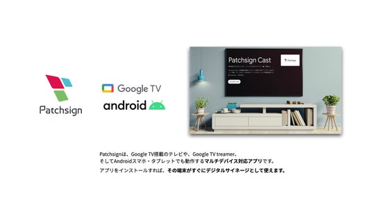 株式会社スタジオフィルス(本社:鹿児島県、代表:高橋健太郎)は、Google TV対応のテレビにアプリをインストールするだけで、誰でも簡単に情報発信ができる、クラウド型デジタルサイネージサービス「Patchsign(パッチサイン)」の正式版アプリをリリースしました。