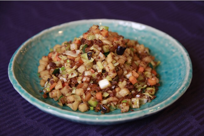 津奈木名産の寒漬(大根)入りこま切り色々野菜とひき肉の炒め 2,200円