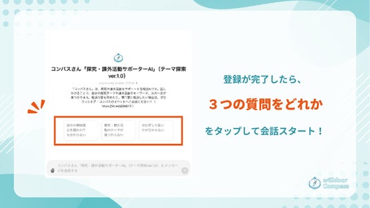 探究・課外活動の相談AI「コンパスさん」のご利用は、以下のステップで無料でご利用いただけます。