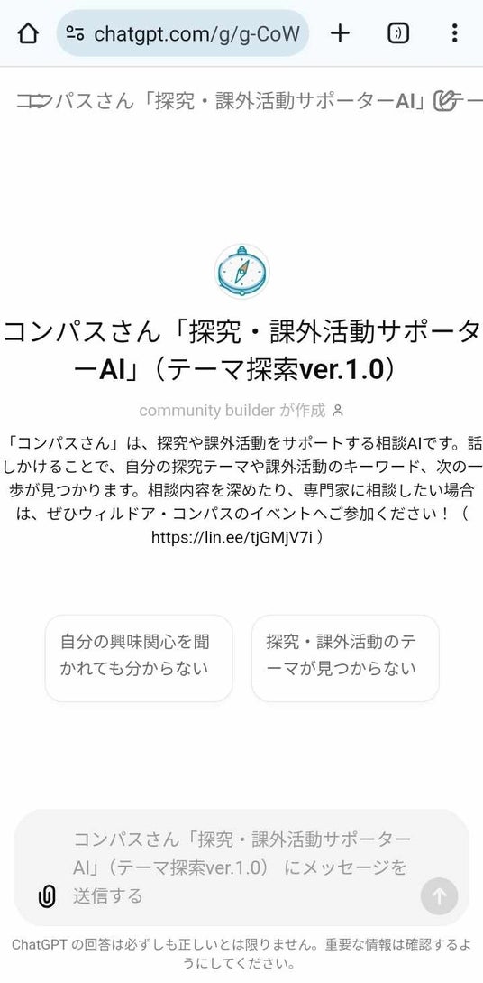 一般社団法人ウィルドア(本社:神奈川県川崎市、共同代表理事:竹田和広、武口翔吾)は、中高生が自身の「やりたいこと」や「探究テーマ」を見つけるための相談AIサービス「コンパスさん」の提供を開始しました。