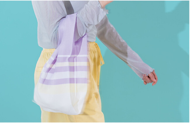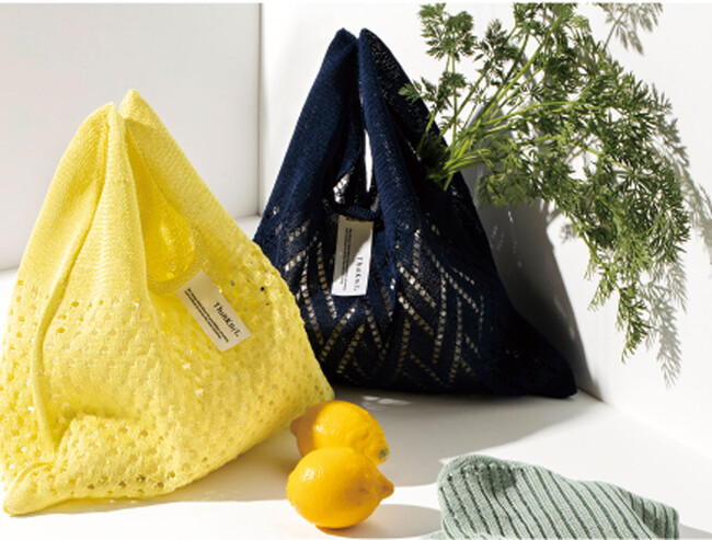 ニットでできたミニマルなバッグは耐荷重が5kg~10kgあり(アイテムによる)、大きなポケットを持ち歩く感覚で重宝します。