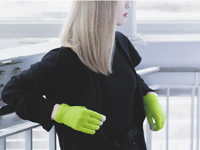 手にピッタリとフィットするストレスフリーの3Dグローブ。立体的に編み上げ、ニットの伸縮性を利用した着け心地はまさに「素手感覚」。