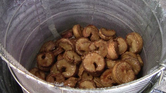油かすは牛の小腸を油で揚げて余分な脂や水分を飛ばした食品で、表面はカリカリで中はプルプルとした食感があり、コクのある独特のうまみがあります。大阪の南河内地域で昔から食べられており、かすうどん等に使われています。