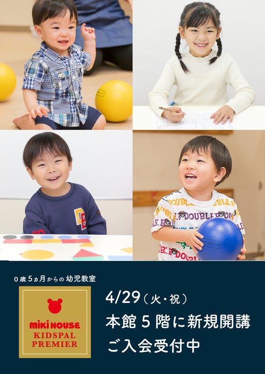 全国の百貨店で展開中の0歳10ヵ月からの幼児教室「ミキハウスキッズパル」を運営する、株式会社ミキハウス アンド 小学館プロダクション(本社:東京都千代田区、代表取締役社長 松井聡)は、幼児教室「ミキハウスキッズパル」のハイクラスコース「ミキハウスキッズパルプレミア」の第1号教室を、2025年4月29日より松坂屋名古屋店に新規開講いたします。