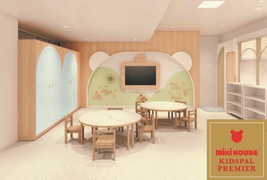 「キッズパルプレミア」は、“未来のために最適・最高の教育環境”を、富裕層を中心とした教育感度の高いご家庭に提供する0歳5カ月からの幼児教室となります。ミキハウスショップ内併設型の教室は、全国初出店。優しいトーンカラーで北欧調のインテリアを備える上質な空間となっています。