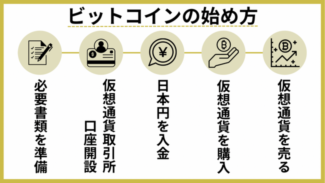 ビットコインの始め方は、下記の5つの流れになります。