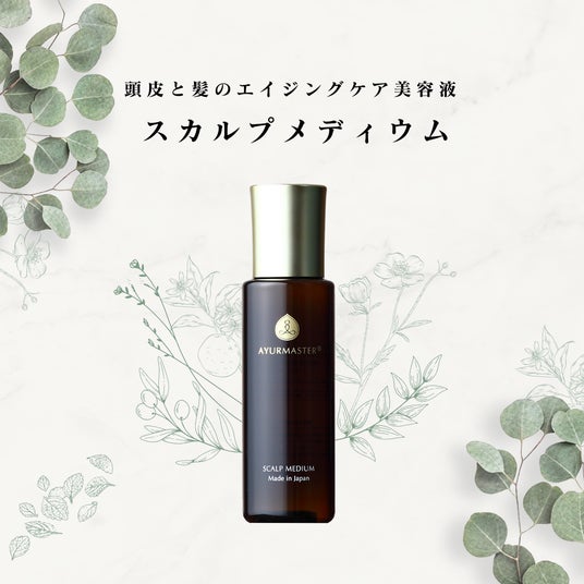 スカルプメディウム(頭皮用美容液)若返りの研究チームが薄毛の原因である頭皮・毛根細胞の老化に着目し、20年間にわたる研究で開発した独自成分Ayucelra(TM)-SC(18種類のアーユルヴェーダハーブ)を凝縮しました。