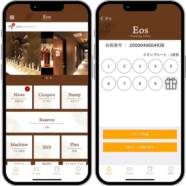 「Tanning salon Eos」では、2020年10月に前身サービスの『アプリムーバー』を導入され、2023年6月以降そのアップデート版である『matomaru』を引き続き活用いただいております。