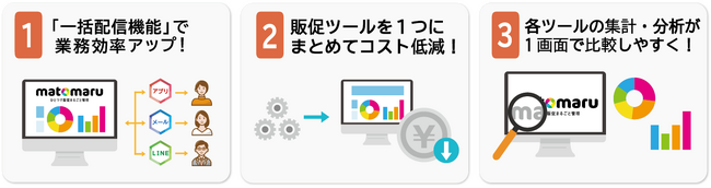 1.アプリ・メール・LINEの各ユーザーへ「一括配信」!