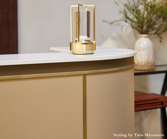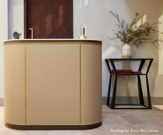 演台やテーブルの腰面(曲面含む)に使用されています。アップボーンレザーは、環境への配慮とデザイン性を両立した、革新的な素材です。ぜひ、映画「グランメゾン★パリ」でその魅力をご体感ください。