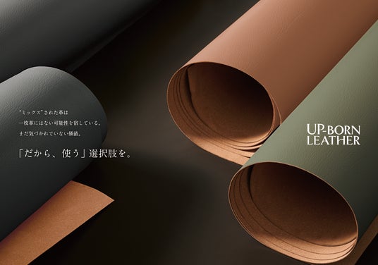 アップボーンレザーは、本物の革を粉砕して加工した、新しい上質サスティナブル建材です。従来のレザーでは実現できなかった15mのリアルレザー調質感を、継ぎ目のない上質な仕上がりで実現。テーブルやデスクの表面、店舗什器、収納家具の表面、引き出しやキャビネットの内貼り、建具やパーテーションなど、様々な用途に最適です。