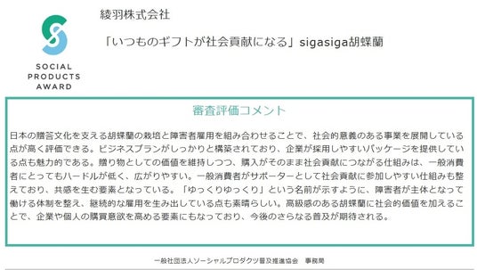 この“社会貢献になる胡蝶蘭”というコンセプトが評価され、sigasigaはソーシャルプロダクツ・アワード2025においてソーシャルプロダクツ賞を受賞しました。