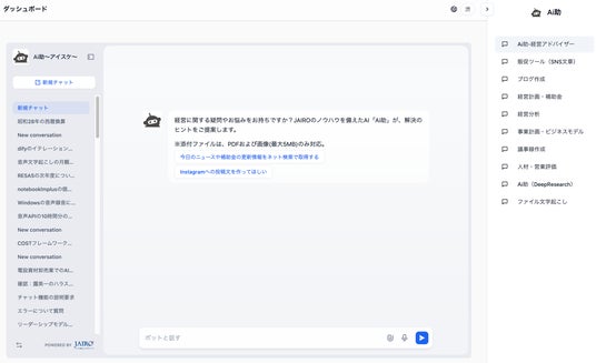 Ai助のダッシュボード(機能別にタブで分かれているので用途に合わせて直感的にAIを使える)