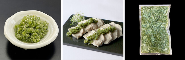 安曇野産わさびの茎を75%使用し、ゴマ油、にんにく、食塩、レモン、胡麻、チキンエキスパウダーで味を調えた、シャキシャキ感のある万能料理素材です。解凍するだけでそのまま使え、短時間で盛付けることができます。肉料理や白身魚料理に添えるだけでひと味違う味わいを楽しめます。また、ツナやマヨネーズと和えるだけでオリジナルソースが完成します。