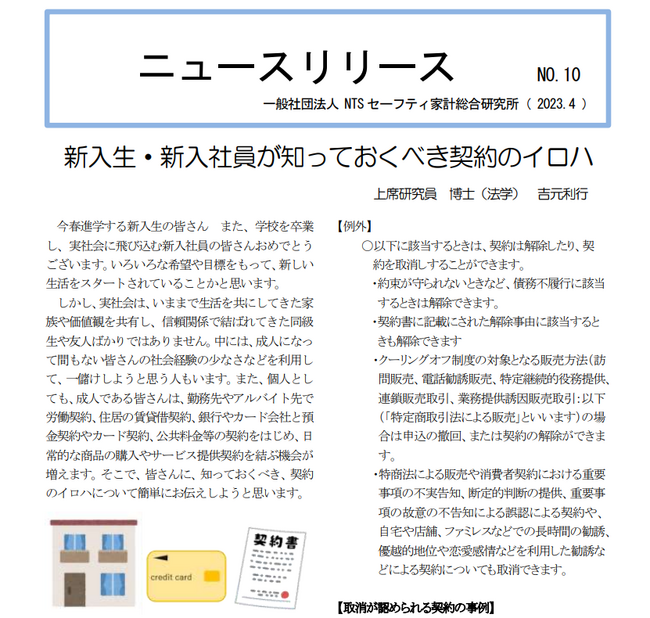 ニュースリリースとは、私どもが、主に生活の立て直しの相談中にいただいた「気づき」などをもとに、独自の調査と整理を行い、一般の方へのお役立ち情報(家計教養)としてご提供している啓発活動の一つです。