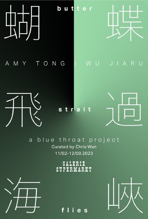 2023年11月2日(木) より 12月9日(土)まで、キュレーターに萬豐氏(Chris Wan)を迎え、香港出身のアーティストAmy TongとWu Jiaruによる二人展「青喉:胡蝶が海峡を渡って行った」をGalerie Supermarkt(東京)にて開催します。
