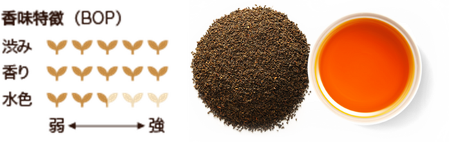 標高の低さから季節風の影響を受けにくく、気候の変化が少ない。そのため、クオリティシーズンというものはなく、一年を通してほぼ同じ性質の茶葉が収穫されるスタンダードな風味を持ち、ブレンドや、バリエーション用に最適。タンニンの量が少ないので冷やしても濁りにくく、ミルクティーやアイスティーにも向く。