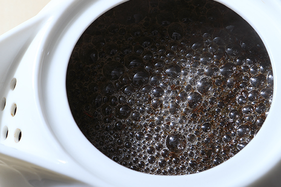 5.ジャンピングが終わるまで蒸らす。細かく切ったタイプの茶葉で3分、形がそのまま残るタイプの茶葉で5~6分が目安。しっかり蒸らすことで茶葉から豊かな香りとコクを引き出せる。