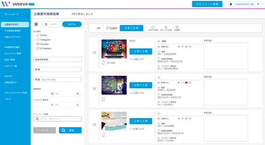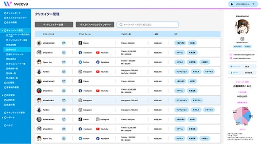 株式会社Influencer Tech(本社:東京都港区、代表取締役CEO:甲斐雄太、 以下 Influencer Tech)は、インフルエンサーマーケティングに関連する全てのステークホルダー「広告主」「広告代理店」「プロダクション」「インフルエンサー」4つのアカウントタイプにて検索・発注から動画公開まで一気通貫で運用できるプラットフォーム「Weeva」(ウィーヴァ)を3月14日に正式リリースいたします。