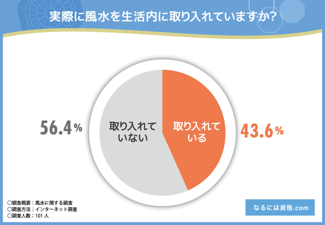 生活に風水を取り入れている方は43.6%の結果に
