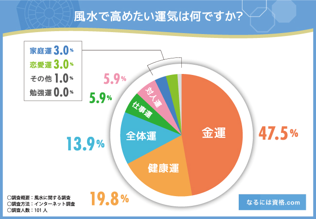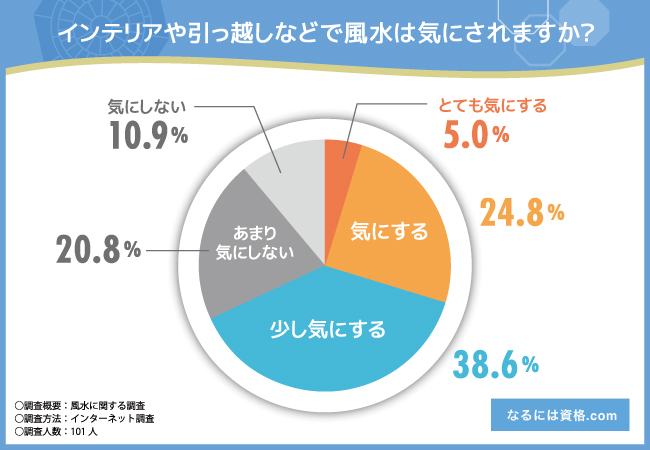 なるには資格.com(株式会社Nanea 本社:福岡県、代表取締役:石丸大輔)は、全国20~60代の男女101名を対象に「風水」に関する調査を実施しました。
