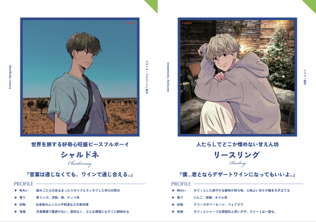 ナチュールワインは、昔ながらの製法で製造されたワインを指し、チューハイのようなフレッシュな味わいがあるとされています。さらに、ナチュールワインをイケメンに擬人化し、初心者でも味わいをイメージしやすいように工夫いたしました。