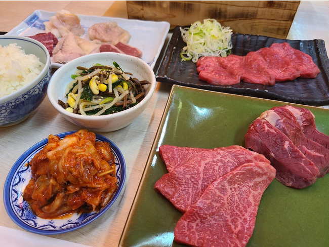 上ハラミと上ロースの贅沢な味わい、ネギたんの繊細な風味、さらには5種類のホルモンの濃厚な旨みが楽しめます。キムチやナムルのピリ辛さがアクセントとなり、お腹いっぱい満足感を与えるセットです。