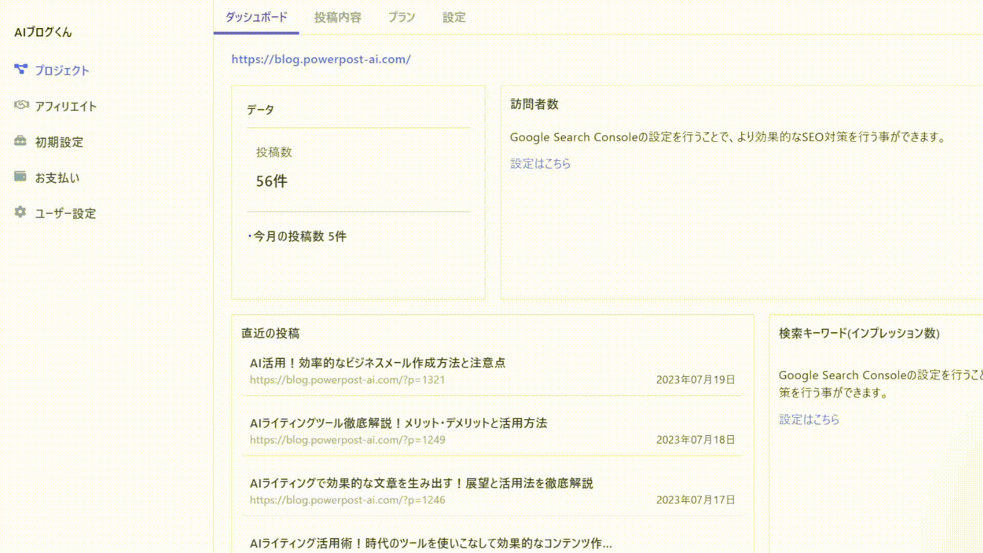 記事を書いて投稿するだけでは、Googleが気づくまでに時間がかかります。しかし、AIブログくんには、Googleに直接記事を書いたことを知らせる機能が自動で備わっているため、検索結果への反映を速めることができます。
