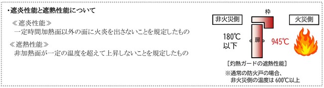 ※2020年3月時点当社調べ。国内において、1.遮熱性能を有している 2.特定防火設備(60分防火設備)である 3.ISO(国際規格)に規定された遮熱性能基準を満たしている、という3点を兼ね備えた扉が業界初となります。
