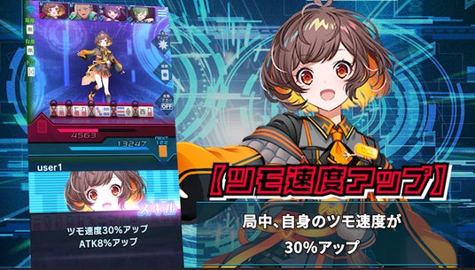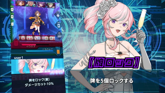 キャラクターはプレイヤーが任意で発動できるスキルを所持しており、役を揃えるのを補助するものや相手を妨害するものなど様々なものがあります。