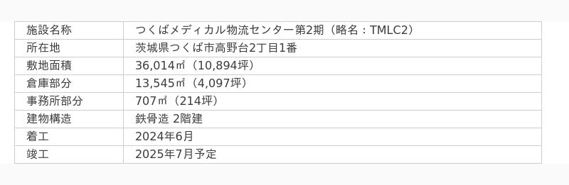 伊藤忠ロジスティクス株式会社(本社:東京都港区、代表取締役社長:岡広史)と沼尻産業株式会社(本社:茨城県つくば市、代表取締役社長:沼尻年正)は、2025年7月竣工予定の「つくばメディカル物流センター第2期」を始動いたしましたのでお知らせいたします。