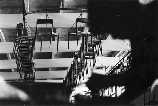 J.L.モラー工場の空中椅子搬送システムを示すアーカイブ画像