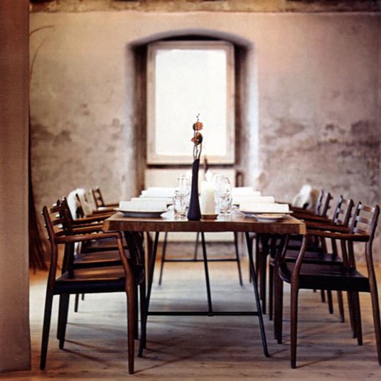 コペンハーゲンにある世界的に有名なNomaレストラン。テーブルの周りには同じく有名な1962年製のJ.L.モラー モデル78チェアが置かれています。レストランにはさまざまなJ.L.モラーのチェアが配置されています。