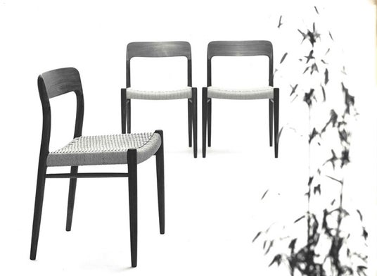 1954年にニールス O. モラーによってデザインされたJ.L.モラー モデル75チェアの60年代の画像