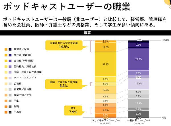 さらに、ポッドキャストの聴取者には企業における意思決定層のユーザーが多い(※1)ことから、自らのビジネスを意思決定層に直接届けることができ、新たな取引、協業などビジネスチャンスを得ることも期待できます。これからビジネス拡大を目指すスタートアップの経営者にとって、プロモーション効果を最大限に引き出すことが『経営者の志』の役割の一つだと考えております。